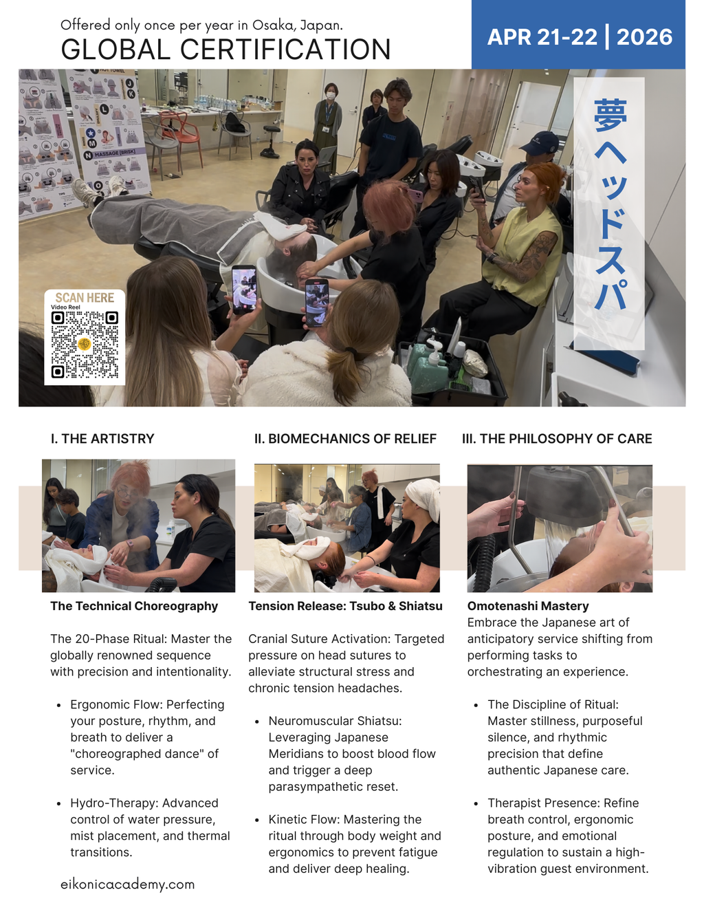 This is not a traditional workshop; it is a professional immersion to the birthplace of Head Spa culture in Japan. Offered only once per year in Osaka, this residency is the only path to achieving the Global Gold Standard in YUME Japanese Head Spa.