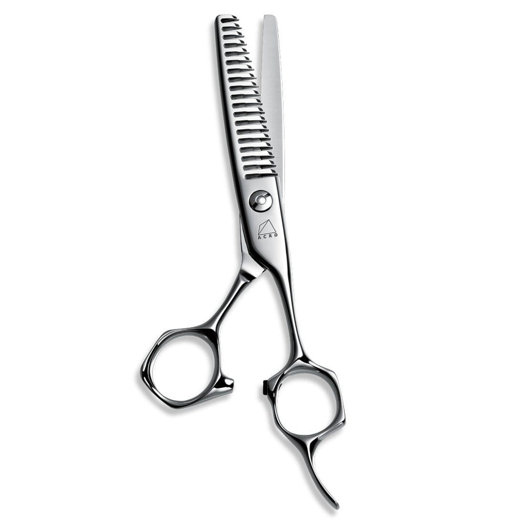 ACRO Yuragi 6 thinning scissors are renowned for their settling capability and have become the go-to choice for many professionals. They deploy a non-damaging and stress-free cutting, making the personalizing process easier on the hair. The unique stairway-like shape of its comb blade ensures a smooth transition of textures, while its "soft bite" feature promoting the hair a naturally lived-in look.